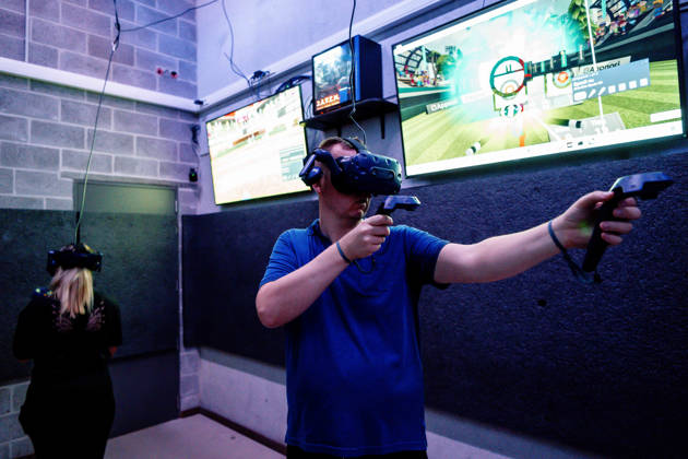 Met onze VR (Virtual Reality) krijg je een speciale bril en twee draadloze 'controllers' waarmee je heel wat spelletjes kan spelen in de virtuele wereld. Een boksmatch of rondzwaaien met twee lightsabers, alles kan!