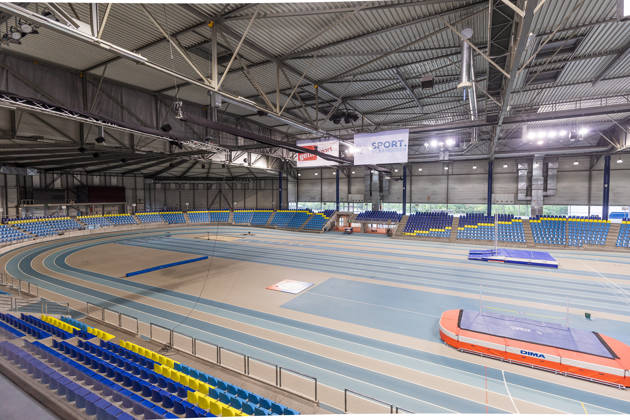 De topsporthal bevat een vaste atletiekpiste met 6 banen van 200 meter. Het middenplein heeft een oppervlakte van 2150 m² die vergroot kan worden tot 3000 m². Het plein wordt gebruikt voor atletiekdisciplines zoals 60 meter sprint, hoogspringen, verspringen, hinkstapspringen, polsstokspringen en kogelstoten.