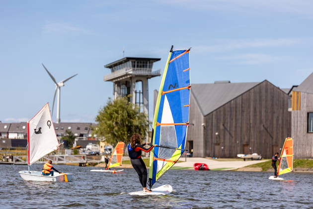 Een twee uur durende kennismaking met zeilen, windsurfen of windfoilen.