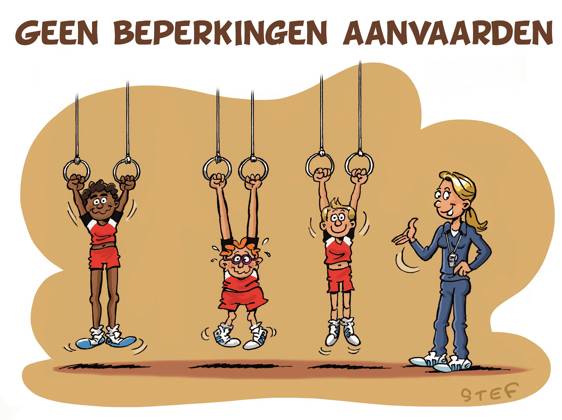 Iedereen heeft zijn beperkingen, ook de de meest atletische sporter. Het omgekeerde is echter ook waar. Ook de zwakste sporter heeft heel wat mogelijkheden. Trainers die kiezen voor een begeleiding van zowel getalenteerden als ‘mindere goden’, kiezen ervoor om beperkingen te aanvaarden en daar ook acties voor te ondernemen. Ze creëren een situatie waarin elke sporter op maat sport en zich daarbij goed voelt. Dat levert een grote winst op voor de individuele sporter en biedt een sociaal-maatschappelijke meerwaarde.